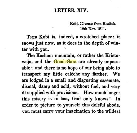 Кто знает географию Кавказа, скажите: что автор начала 19 века может подразумевать под Good-Gara? Вот записки, из которых, вероятно, почёрпнуто название: